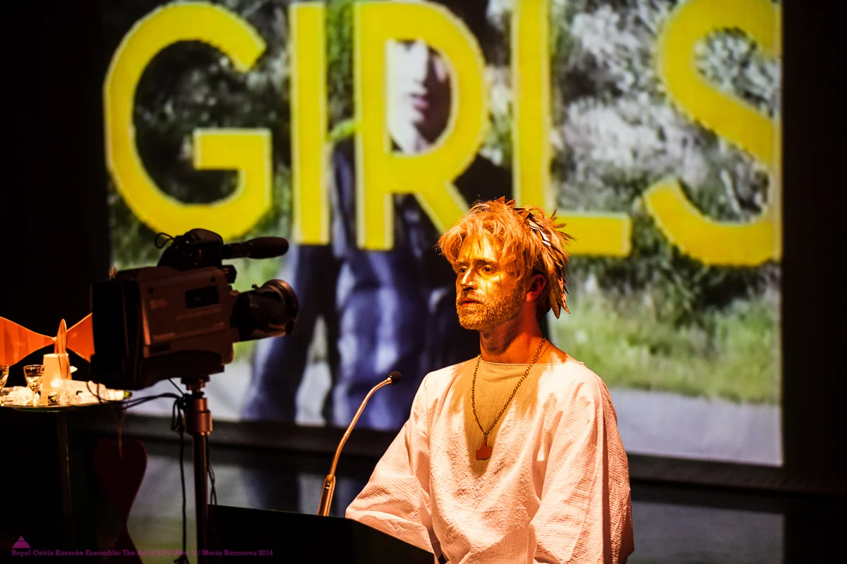 On May 23, 2014, in Santa Barbara, CA, Elliot Rodger killed 6 people and injured 13, in a rampage motivated by his lack of success with women. In Elliot - Part 1 of their multi-media series The Art of Luv, Royal Osiris Karaoke Ensemble seeks to treat this wound to the body of Love with a group meditation on masculinity, insecurity, and longing – performing humanity's common search for Love as we misunderstand it. Elliot is a found collection of love stories, a ritual-performance incorporating meditation and modern-day love rituals such as self-sacrifice, sunglasses, best friends, sexually potent bodies, and compulsive shopping. As the foundation for The Art of Luv, it begins an exhaustive piling of objects, videos, rituals, songs, and other physical and psychic pieces for the project.