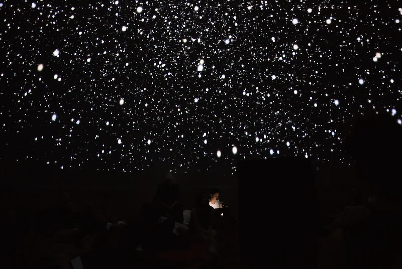 The Great Outdoors takes us on a sublime journey through inner space in the darkness of a planetarium. A lone performer reads texts culled from internet comments and fed through an algorithm, giving voice and body to the thoughts of countless individuals all tapping away at their keyboards in isolation. As fragments of narrative emerge from the chatter, Dorsen invites us to imagine the internet’s infinite possibilities as a new form of celestial authority, and the comments as the internet’s id—unrestrained and protected by anonymity.